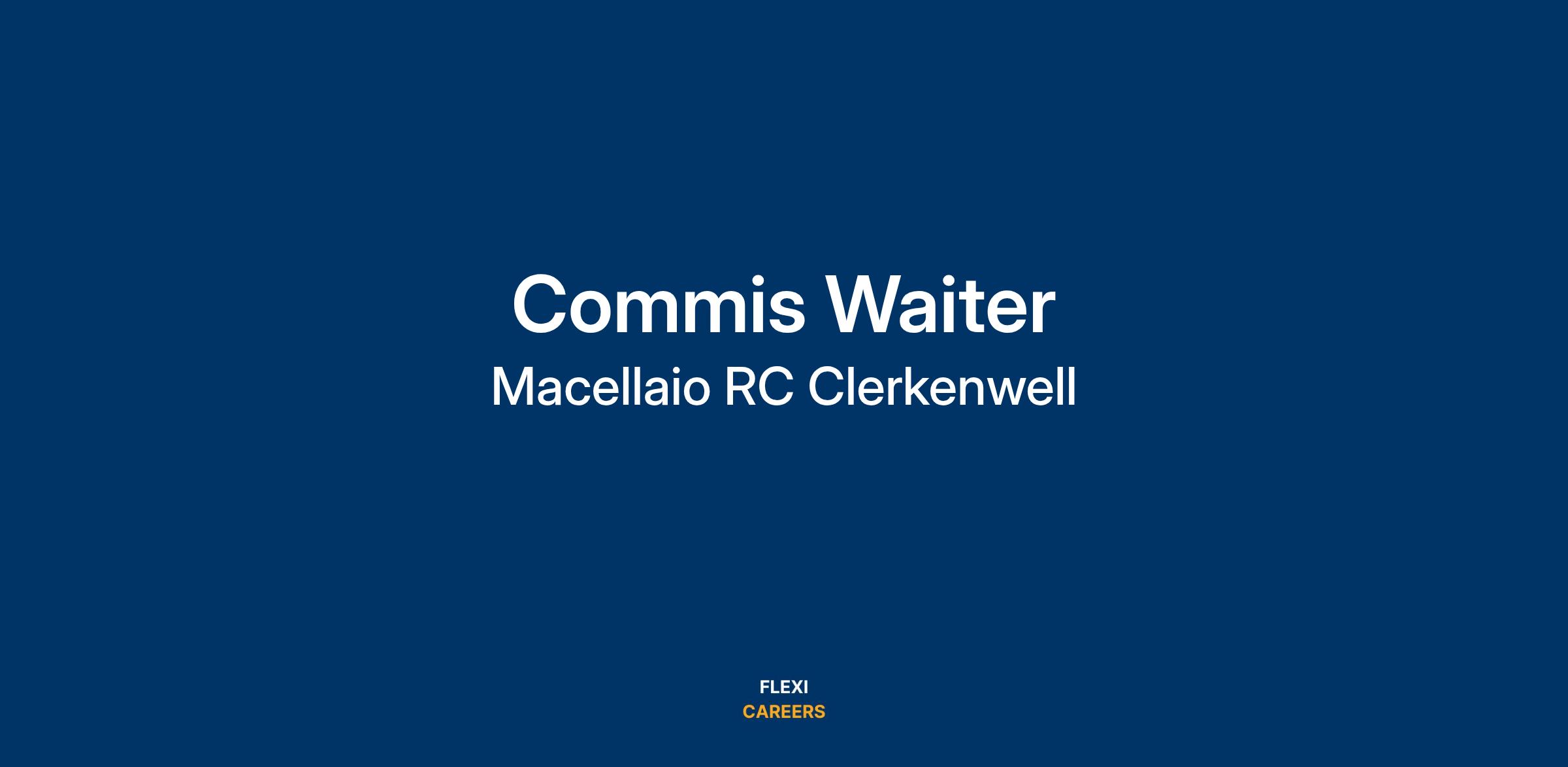 A Commis Waiter responsible for back of house set up for the Restaurant and to assist waiters at table service. Pick up the food from the kitchen, as well as all general equipment polishing and cleanliness. is responsible for delivering the food from the kitchen to the floor staff.